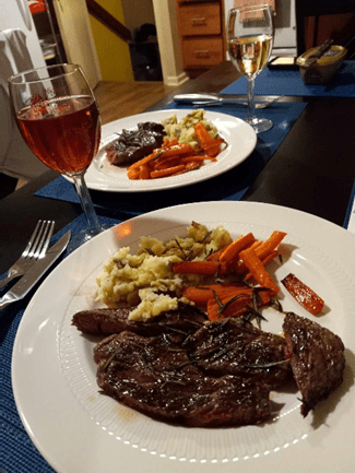 Date night consisted of watching college football and making a fabulous dinner together. We were both having a hormonal day so dinner could have been a total catastrophe, but it wasn’t. We worked well as a team on the most complicated meal we’ve had so far, and it turned out so good!