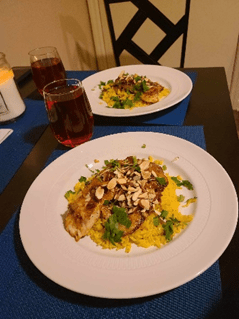 We had another Blue Apron box delivered this week and we fixed the Lemon-Date Tilapia and Saffron Rice meal Saturday night.